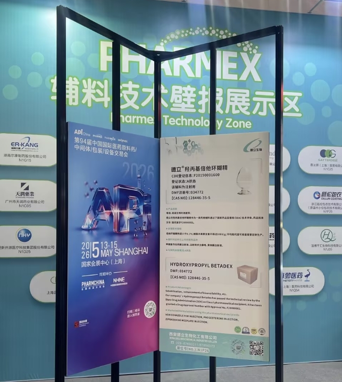 Xi'an Deli Biochemical Industry Co., Ltd. deltok i 2025 API China Exhibition holdt i Chongqing, og viste frem selskapets flaggskipprodukter—Hydroxypropyl Betadex (HPBCD)ogBetadex Sulfobutyl Ether Sodium (SBECD)-til globale fagfolk innen farmasøytisk og kjemisk industri.